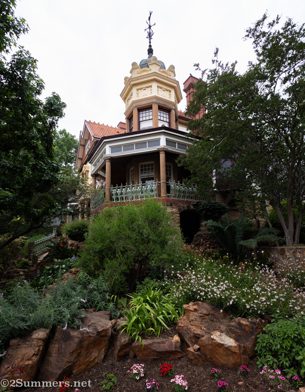 Last weekend Thorsten and I visited Dolobran, one of Joburg’s oldest, quirkiest, and most mysterious mansions, on a tour with the Johannesburg Heritage Foundation (JHF). Dolobran is unique among Joburg’s “Randlord” mansions (other examples of which include Villa Arcadia and the View) in that it’s privately owned, still occupied by descendants of the original owners, and almost never open to the public. Saturday’s tour was open only to JHF members and photography wasn’t allowed inside.