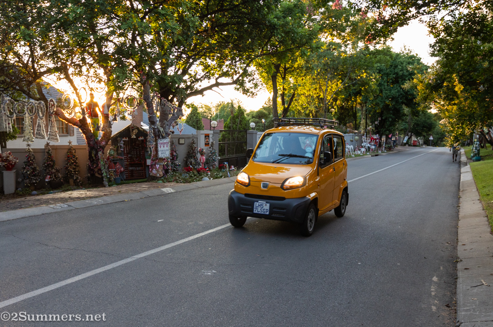 Christmas lights and decorations aren’t a big thing in Joburg. A huge percentage of the city’s houses are behind high walls, and a huge percentage of the city’s residents leave town for the Christmas/summer holidays. So most Joburgers don’t bother with outdoor Christmas decorations, but I recently learned about a notable exception: Moray Drive in Bryanston.