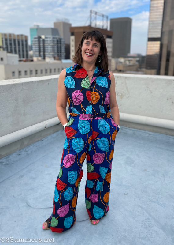 This jumpsuit love story began eight months ago, when I booked a Caraci experience on Airbnb to celebrate my birthday. Thorsten and I spent a glorious day in the Joburg CBD, shopping for African print fabric, learning how to sew, hanging out in the city, and having fabulous jackets made to our exact measurements.