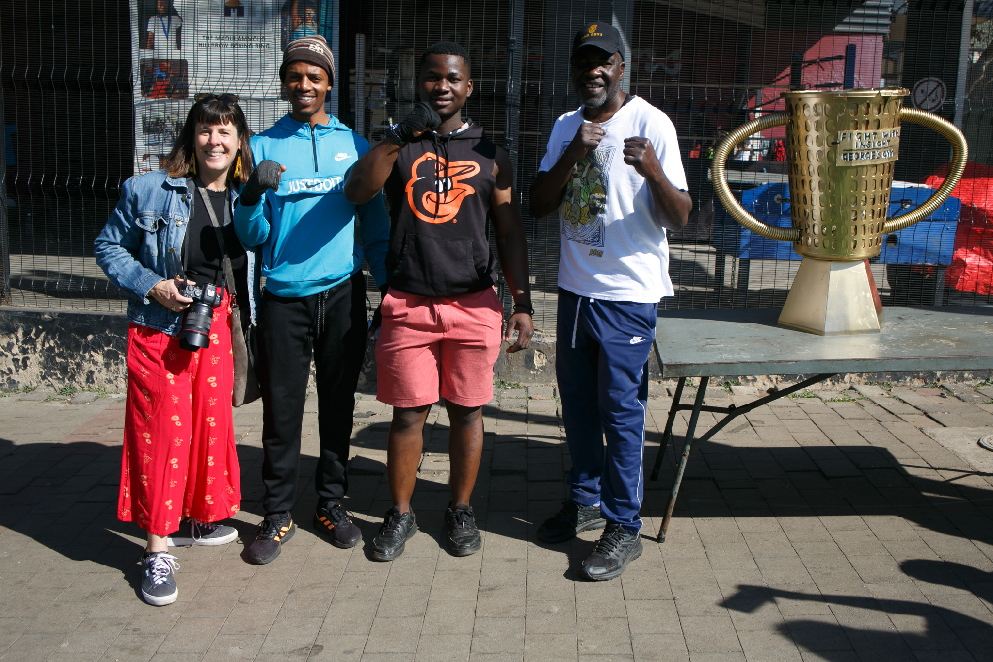 Parade joy.This ten-story banner was unfurled during the parade.Most of the route was very clean. But we also paraded past quite a lot of garbage, due to the ongoing Pikitup strike and persistent municipal neglect of Hillbrow and other parts of the inner city.The fantastic Ezase-Vaal Brass Band performs on a Rea Vaya bus platform. As usual, the marching band was my favorite part of the parade.A parade participant from the African Reclaimers. Take note, City of Joburg.The fabulous Forest Ramushwana of Exotically Divine poses with his chosen artistic medium: trash.Mpumelelo Mcata, co-founder of the Blk Jks and also my neighbor in Brixton, plays the electric guitar on a Hillbrow balcony, observed from both above and below.Rooftop hiphop.This street-side barber and his client were engulfed by the parade and loving it.The parade marched past George Khosi’s Hillbrow Boxing Club, my second home for more than a decade. After 12 years of training with George (far right) multiple times a week in his abandoned-petrol-station-turned-boxing-gym, I recently decided to take a boxing sabbatical. I’ve really been missing George, who represents all of the best things about Hillbrow for me, and it was great to see him again. (Photo: Mark Straw)A group of incredible actors performed the "Double, double, toil and trouble" witch scene from Macbeth in the middle of a Hillbrow street. It was terrifying and thrilling.No Joburg parade is complete without a performance by Brixton’s very own Sentech Croozers. This is the talented Navan Kamodzi. Read more about bicycle spinning here.The parade ended with this artist from The Cirk repelling – and doing a full-on dance routine – off the side of a Hillbrow apartment building. At this point everyone down below was completely losing their sh*t.Photos don’t do it justice.
