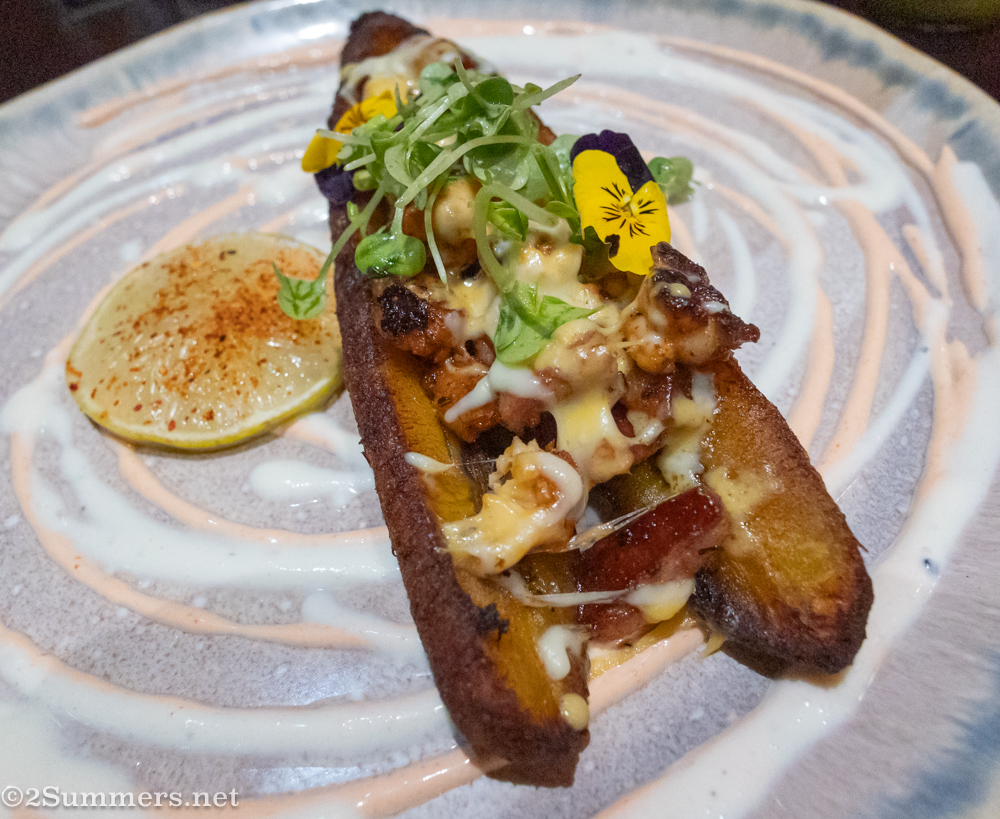 I went for dinner at Artüro not long after seeing that post, and I did have some great tacos. But I also realized that Artüro isn’t exactly Mexican – or at least it’s not ONLY Mexican. In addition to tacos and nachos and margaritas, the menu offers stuffed plantains, Colombian red snapper, and a Central African dessert called Mikate: beignets with Benin chili sauce.